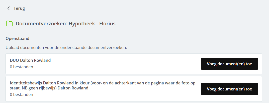 In Uwkluis verzamelt de klant zijn documenten die benodigd zijn voor het advies of de hypotheekaanvraag. De klant ziet in Uwkluis de benodigde stukken, kan deze uploaden en de status (goed- of afgekeurd) van zijn stukken inzien.
