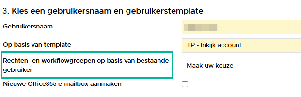 Gebruikersnaam, template en rechten bestaande gebruiker