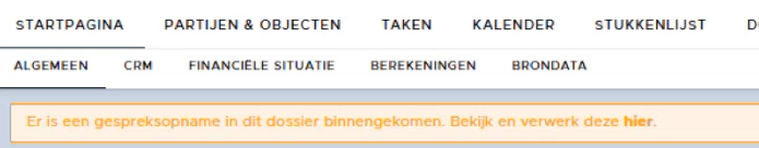 In het dossier wordt een melding getoond als er een gespreksopname aan het dossier is toegevoegd via de API.