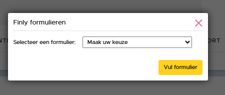 Een formulier genereren en prefillen doe je door te klikken op de workflowpijl en te kiezen voor ‘Slim formulier (Finly) genereren en prefillen’. Vervolgens kan je kiezen welk formulier je wilt aanmaken.