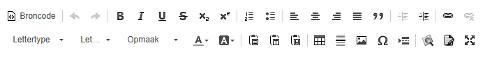 Deze tekstverwerker (editor) is ontwikkeld door een externe partij. Webgebaseerde tekstverwerkers werken altijd met HTML code op de achtergrond. Wanneer je typt, wordt er achter de schermen een HTML code gegenereerd van wat je typt. Je kunt deze HTML code bekijken door op de knop ‘broncode’ te klikken.