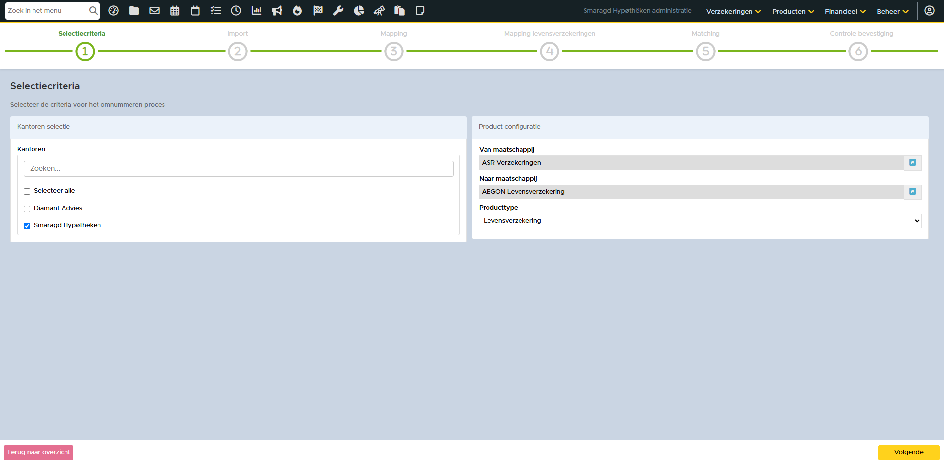 Vanaf nu kan je, als je werkt met mutatievoorstellen, gemakkelijk zelf schade- en levensverzekeringen omnummeren. Dit is handig wanneer een maatschappij de portefeuille heeft overgenomen van een andere maatschappij. Het omzetten doe je vanuit de geheel nieuwe module Omnummering. Hierin geef je aan welke polissen en naar wat deze omgezet moeten worden. Dit gebeurt door middel van een CSV bestand. Hier lees je er meer over.